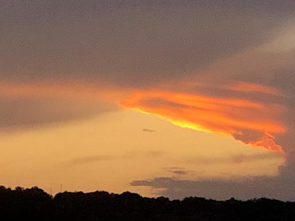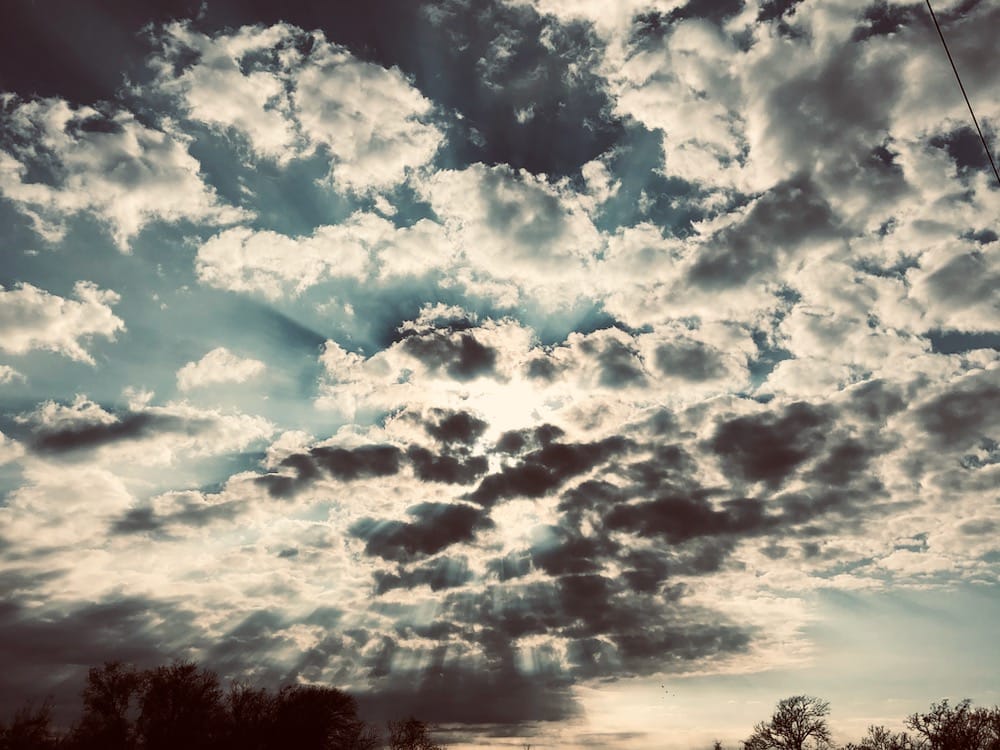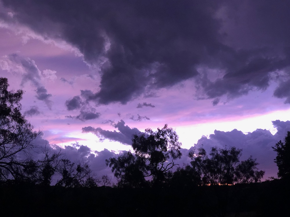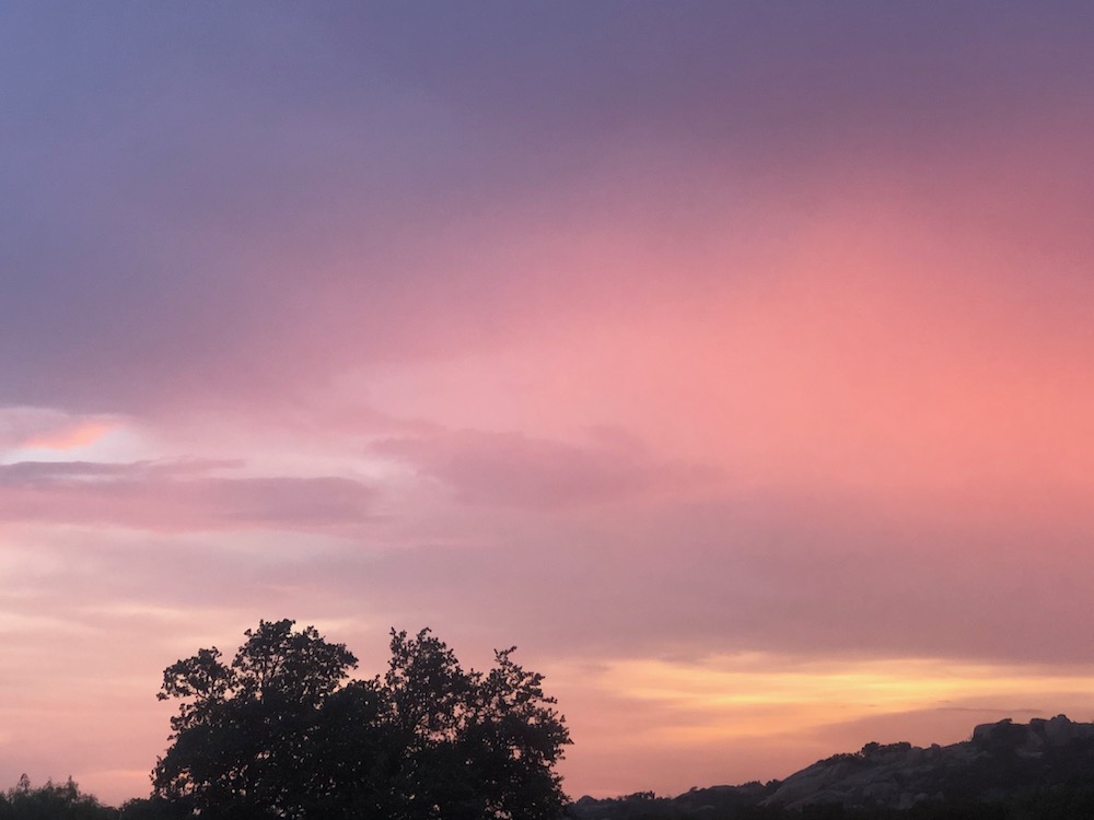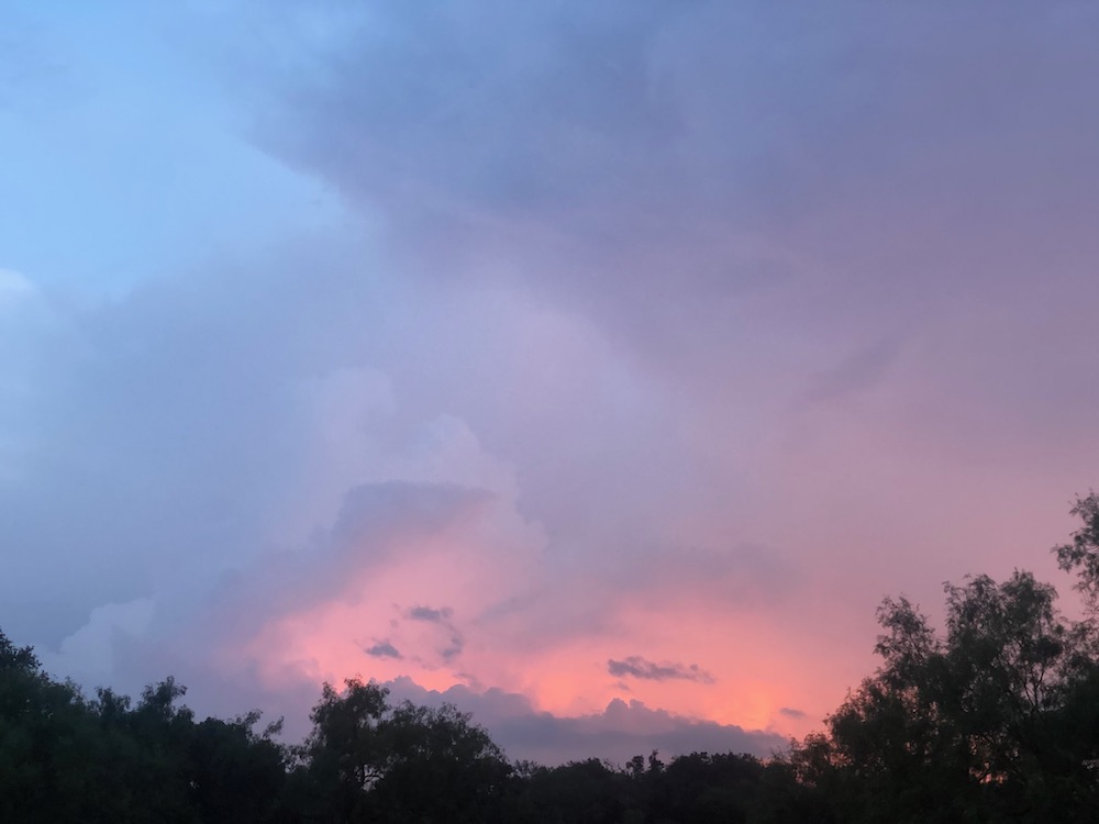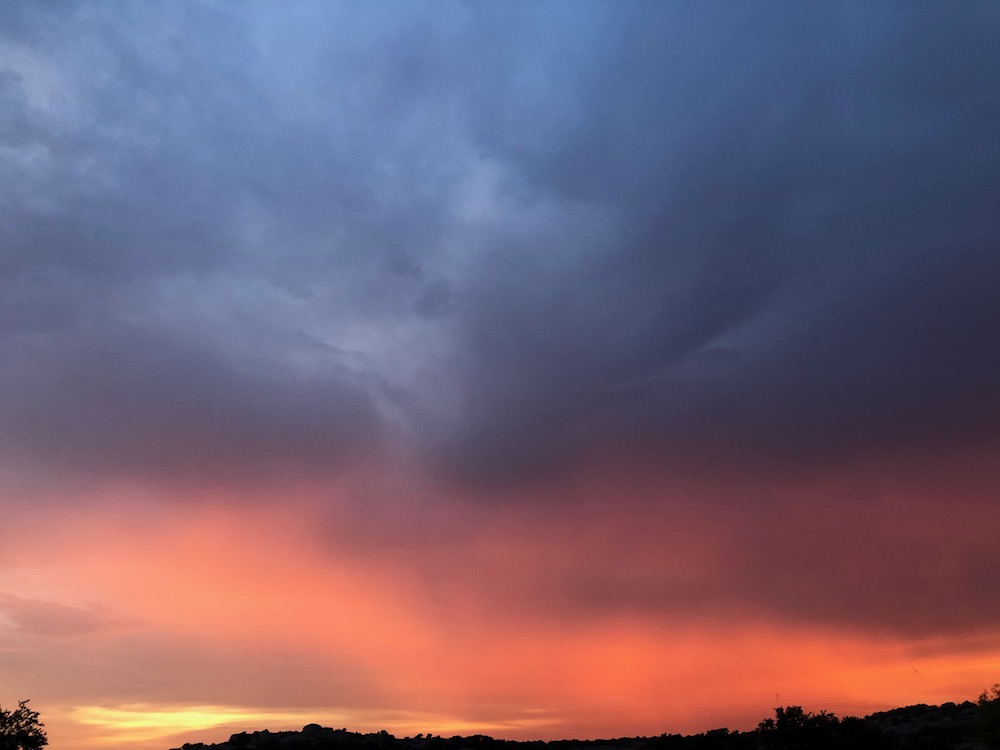 We had one really cool storm night this spring, with sunlight pouring through rain, lightning bolts, rainbows and incredible clouds. Our photos ended up with so many colors that night, amber purple rose and blue! Paint them! 🙂