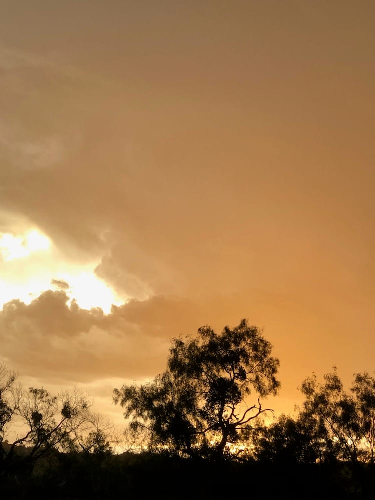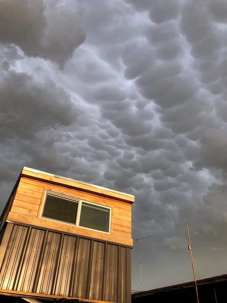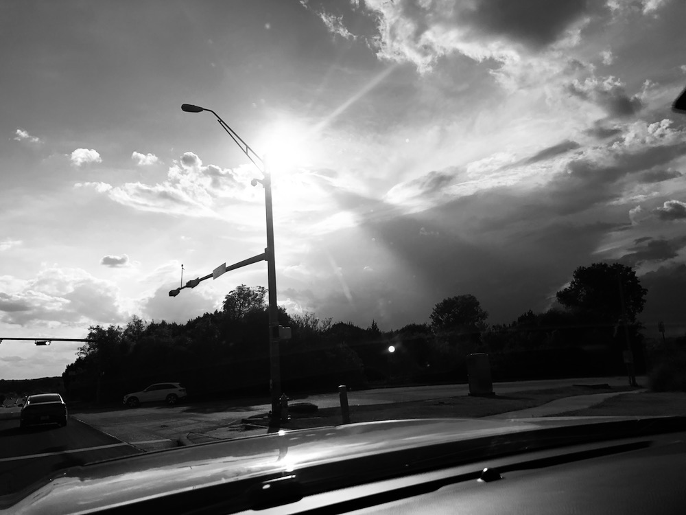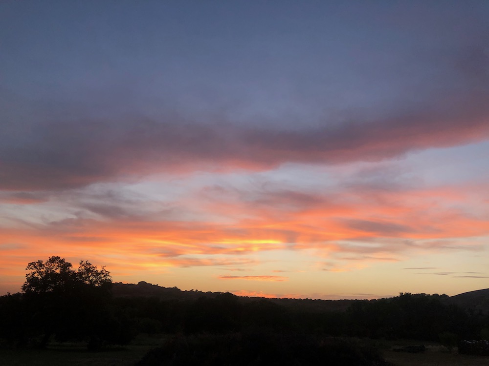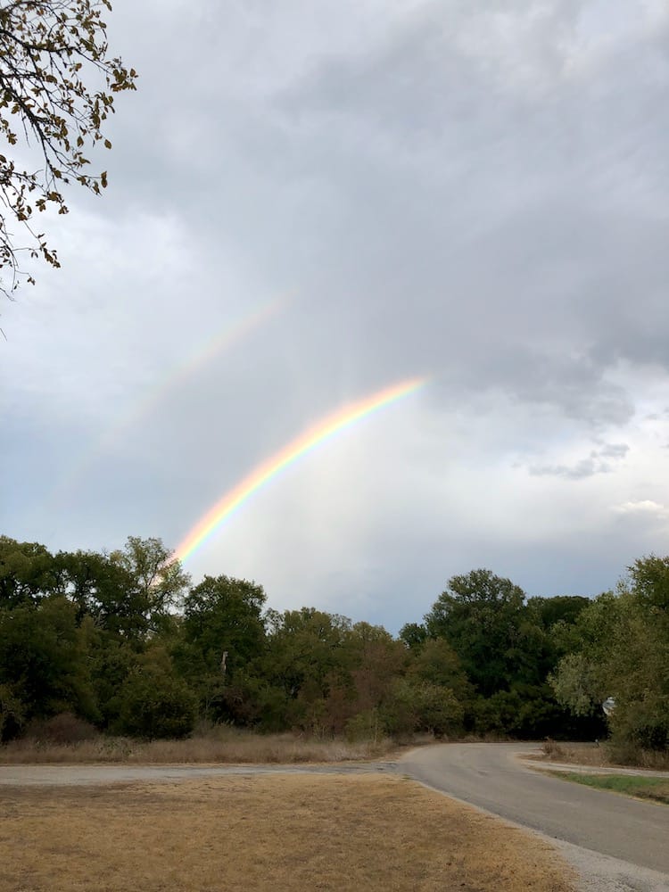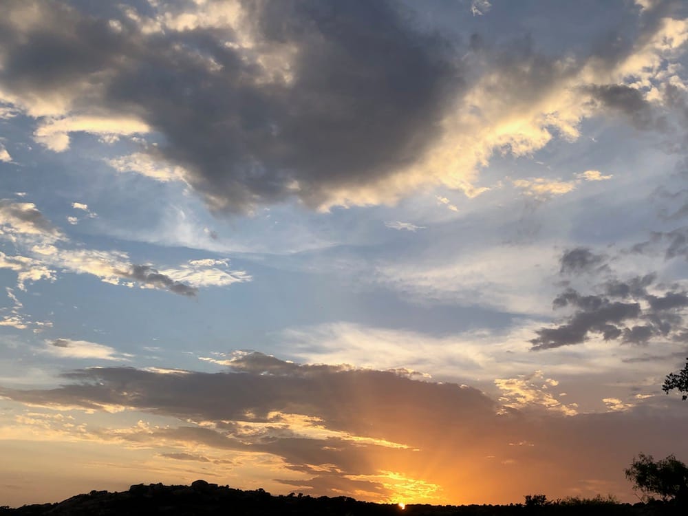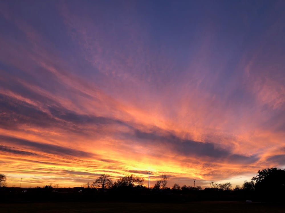 We had one really cool storm night this spring, with sunlight pouring through rain, lightning bolts, rainbows and incredible clouds. Our photos ended up with so many colors that night, amber purple rose and blue! Paint them! 🙂