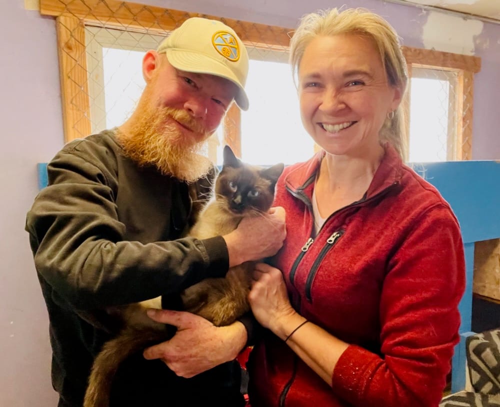 Legend of Zia Tumbleweed: It was a bright and sunny morning at the end of February, when the west wind began to roll in. Jesse & Khara drove out to the Desert Haven Animal Rescue to volunteer some love and affection to the dogs and cats of Sierra County (living communal style till they find their forever homes). They met her in a cozy room she had all to herself, since the little Siamese cat had only recently found her way there. She had emerged from the dust of the desert to the House of Bess, who helped this little gal to the haven, as her own feline companions were unforgiving to new company. Well, she had lovingly charmed the staff until the fateful day she meowed, “Ramble on.” She settled in the big white truck, riding past dirt devils and through gusts of 50 miles per hour. Upon arrival at the homestead, they arrived to greet her: tumbleweed after massive tumbleweed blew through the park of modern wagons and piled up against the creosote hillside. The little cat sent her wrangler out to receive the giant traveling bushes, protect the house and send them on east to disperse their seeds. From then on, she was called after the sun symbol of the Pueblo which honors the four cardinal directions and the rambling thistles who rushed to welcome her home.